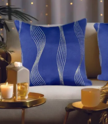 Decorative Gold Foil Cushion Cover, for Sofa, Bedroom, Living Room - Set of 2 - Double wave Navy