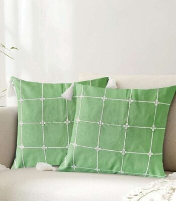 Embroidered Cotton Cushion Cover, for Sofa, Bedroom, Living Room - Set of 2 - Vintage Braid Sage Green