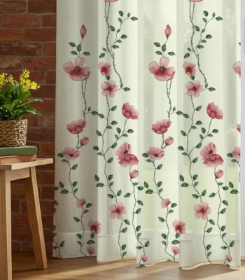 Sheer Curtains, Linen Textured & Digital Printed, Pack of 2 - Mehek