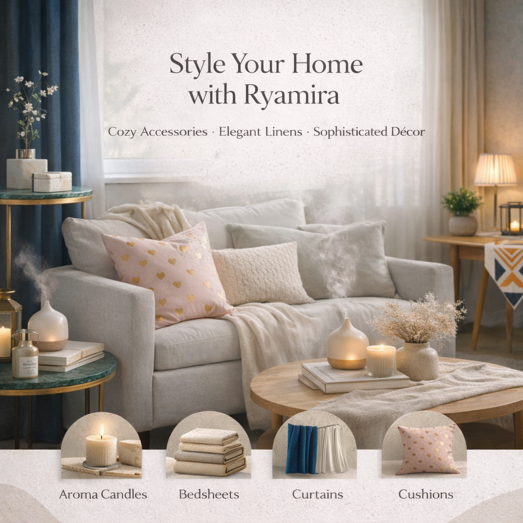 Your home reflects the way you live. The textures you touch, the light you filter, the details you choose—all shape how your space feels every day. Ryamira brings together a refined selection of home essentials designed to add comfort, warmth, and visual harmony to modern living.