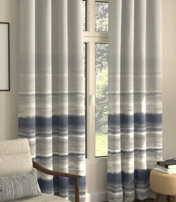 Digital Printed Curtains, Pack of 2 Curtains - Coastal Tides Navy