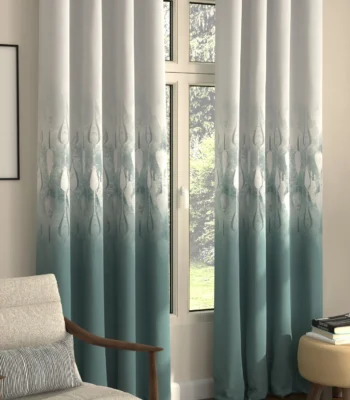 Digital Printed Curtains, Pack of 2 Curtains - Sea Mist Turquoise