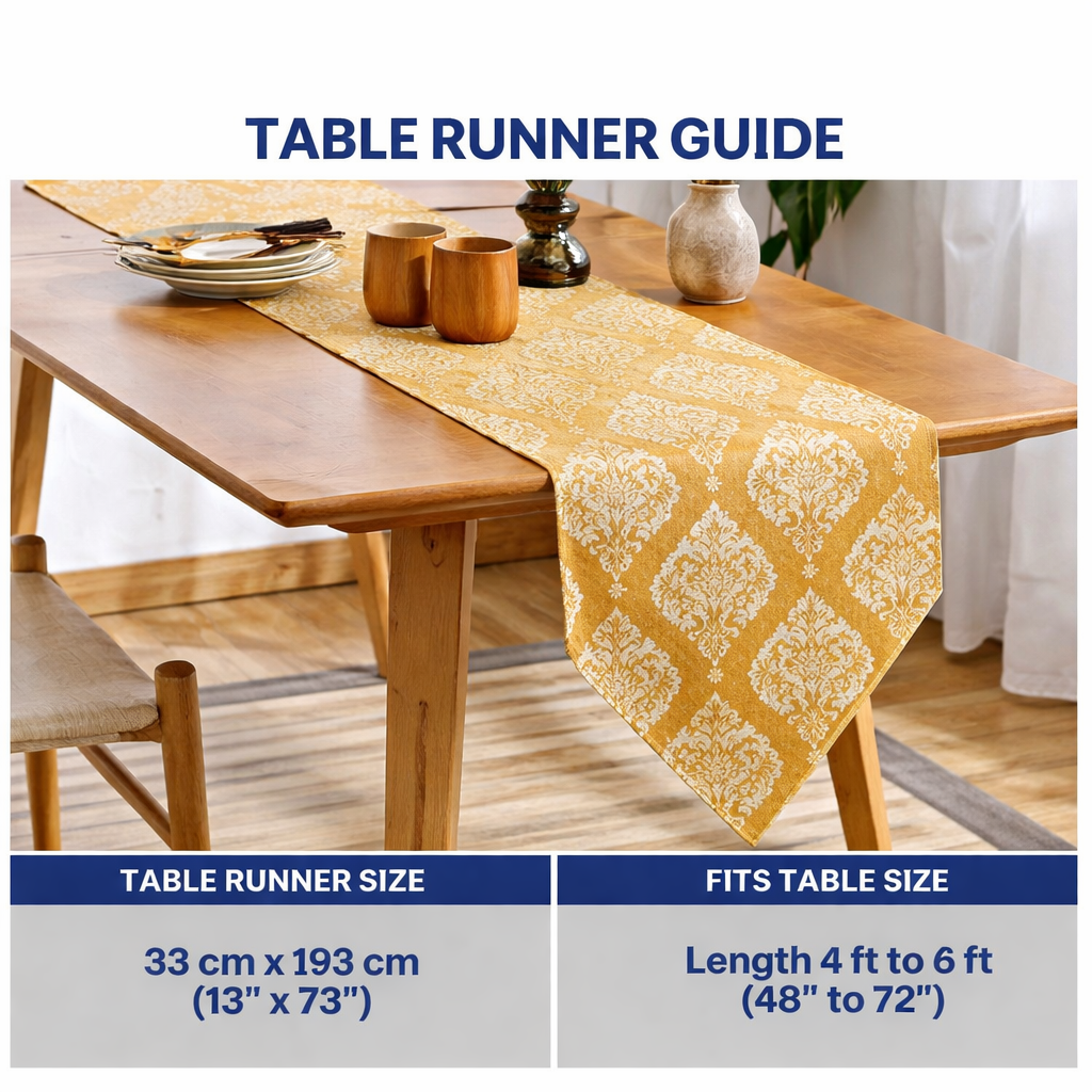 100% Cotton Table runner For 4 or 6 seater Dining / Centre Table – Motif Mustard