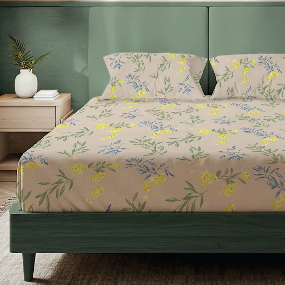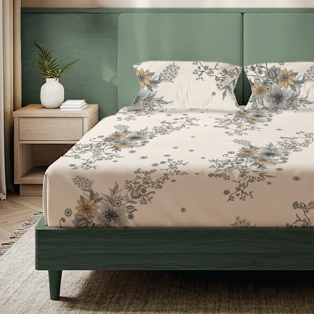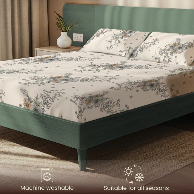 - Cotton-Feel Microfiber Fabric: Crafted from high-quality 200 TC microfiber with a cotton-like feel, this bedsheet is soft on the skin, offering a smooth and comfortable sleep experience. It combines the comfort of cotton with the durability of synthetic fibers.