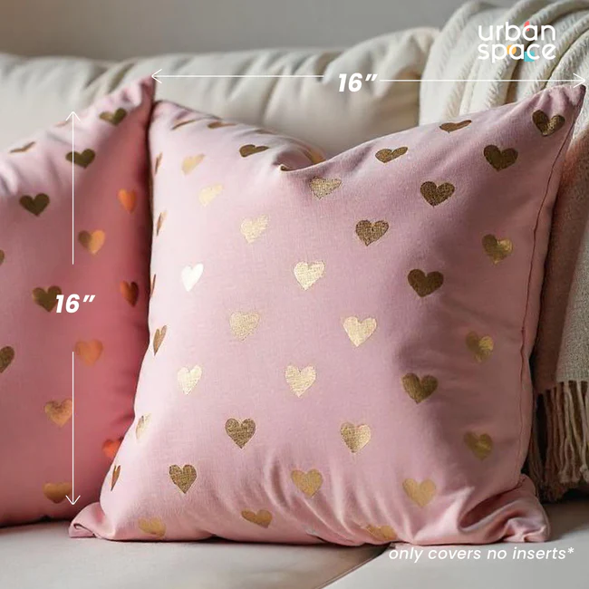 Decorative Velvet Gold Foil Heart Cushion Covers for Sofa, Bedroom, Living Room – Set of 2 – Heart of Gold Pink