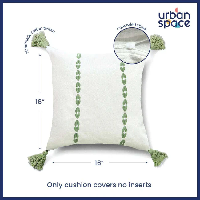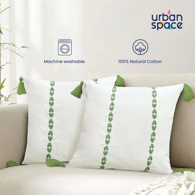 Embroidered Cotton Cushion Cover, for Sofa, Bedroom, Living Room – Set of 2 – Vintage Braid Sage Green