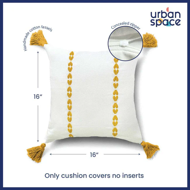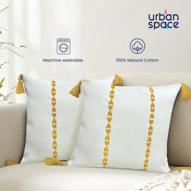 Embroidered Cotton Cushion Cover, for Sofa, Bedroom, Living Room – Set of 2 – Vintage Braid Yellow