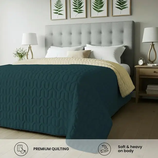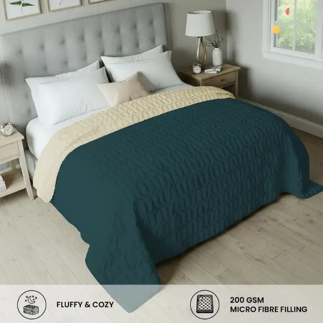 Fluffy & Heavy 200 GSM Microfiber Reversible Quilted Winter Comforters – Teal & Beige