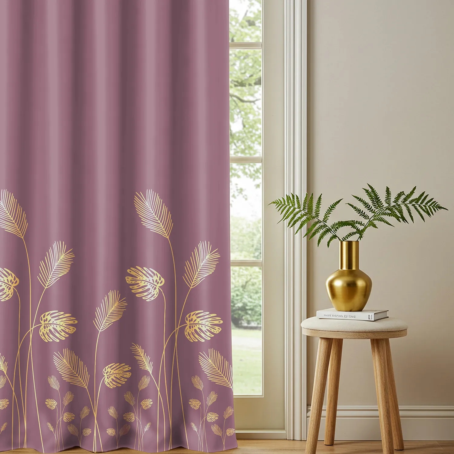 Gold Foil Printed 100% Blackout Curtains – Pack of 1 Curtain – Aurika Mauve