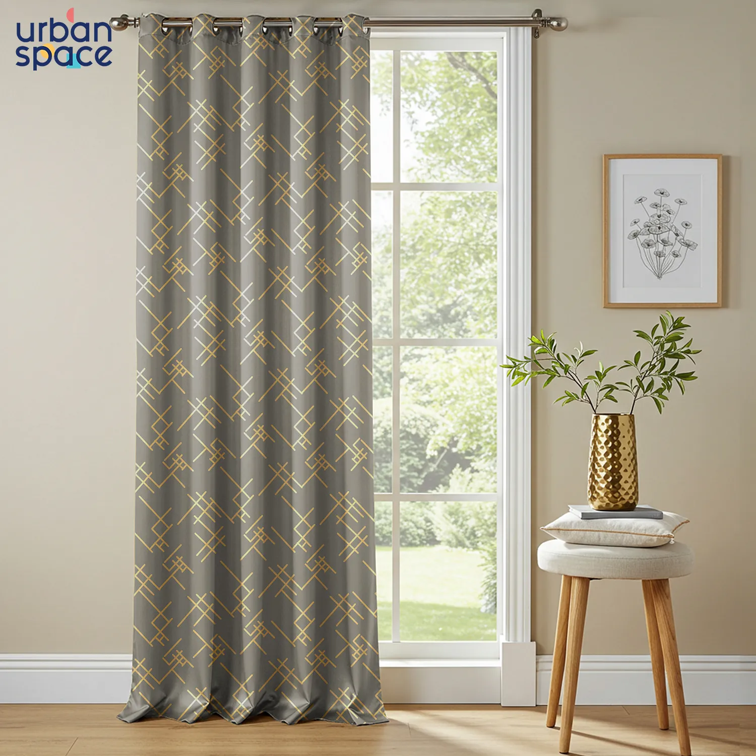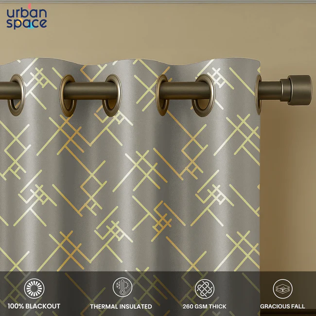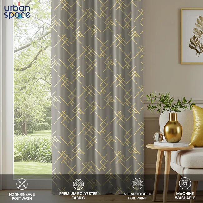 • Elegant Gold Foil Design: Urban Space introduces a tasteful gold foil pattern, these curtains give 80-85% black out effect to any room and adds a touch of elegance and richness, seamlessly blending with any room’s aesthetics for a luxurious feel.
