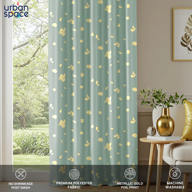 - Elegant Gold Foil Design: Urban Space introduces a tasteful gold foil pattern, these curtains give 80-85% black out effect to any room and adds a touch of elegance and richness, seamlessly blending with any room’s aesthetics for a luxurious feel.